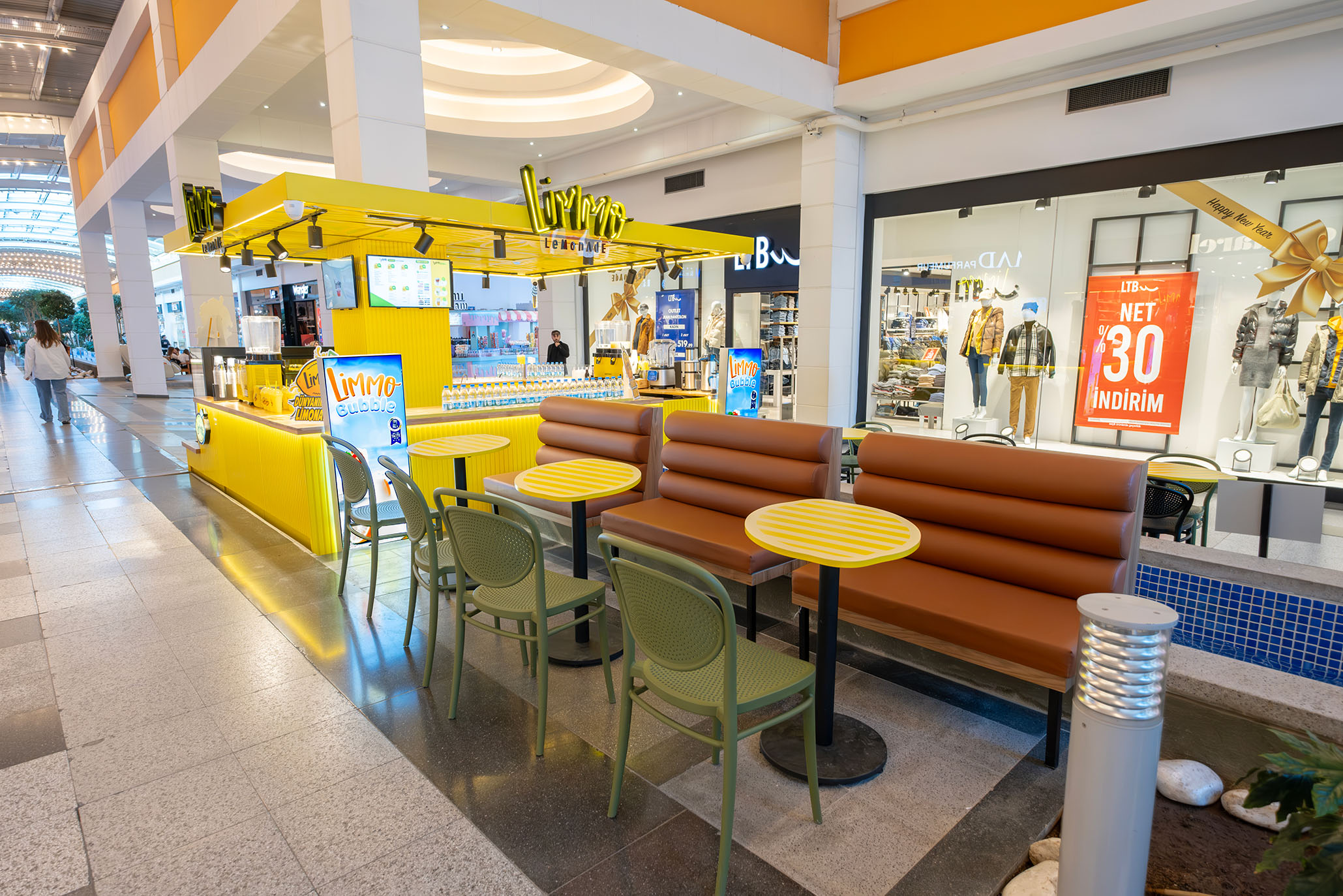 Markanın imzası niteliğindeki canlı sarı tonlarının ve ikonik görsel dilinin ön plana çıkarıldığı tasarım, geniş bir görüş açısı sağlayarak müşteri etkileşimini maksimize etmektedir. Operasyonel verimliliği artıran iç mekan yerleşimi ve kaliteli işçilik ile, Limmo’nun marka deneyimini fiziksel alana kusursuz bir şekilde yansıtmaktan gurur duyuyoruz.