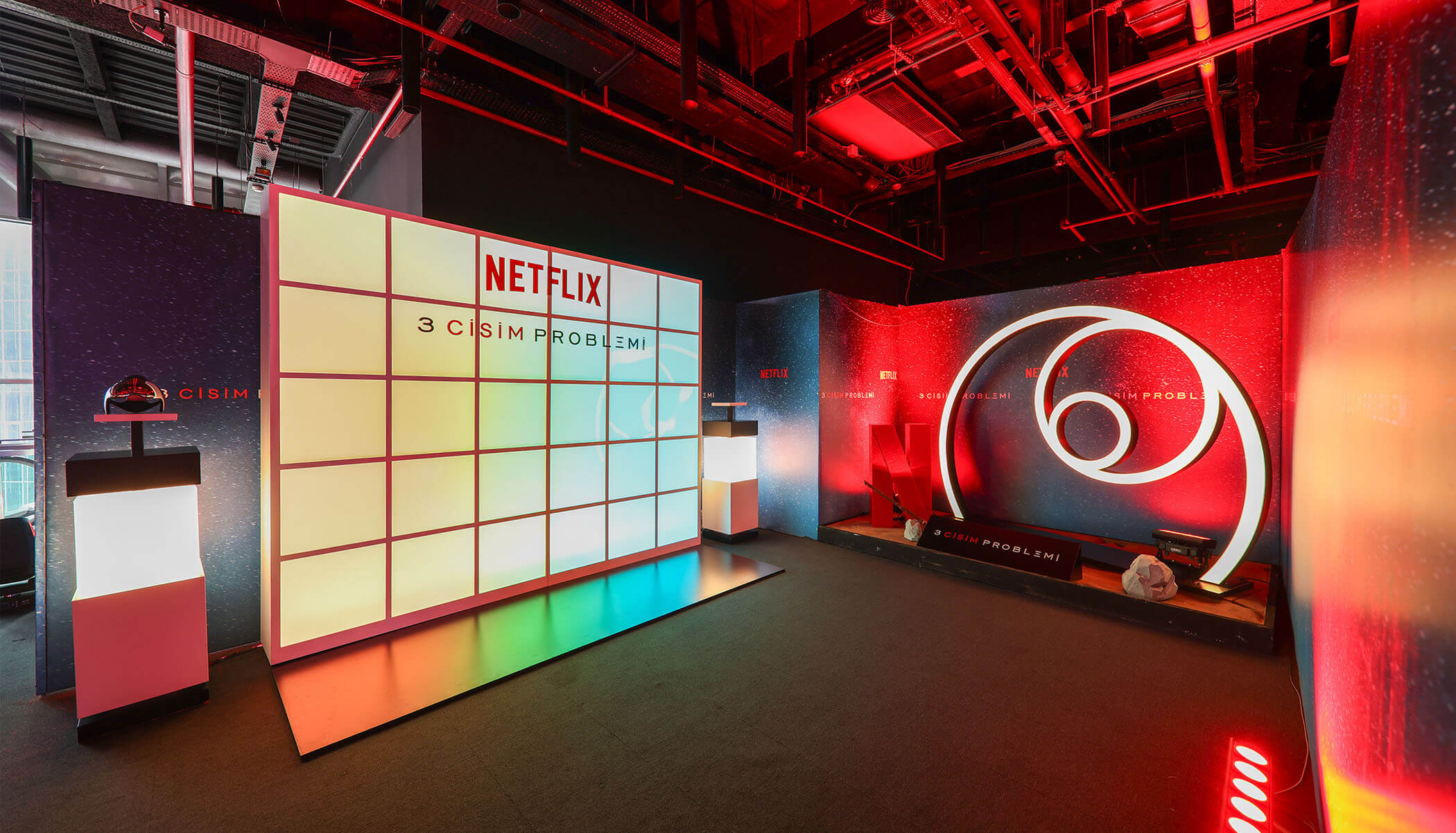 3 Cisim Problemi dizisinin Türkiye lansmanında @theplannercompany tarafından yapılan konsept ve alan tasarımlarının, imalat ve yerinde uygulama işlemlerini keyifle gerçekleştirdik. Uygulama, İstanbul Kanyon AVM de 1 gün içinde oldukça geniş bir kadro ile kuruldu.